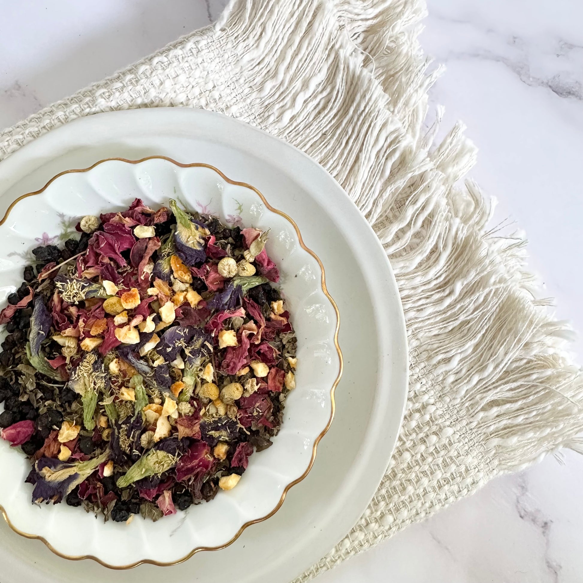 This bright, floral blend is made to lift your spirits and add a little joy to your day. With mood-boosting lemon balm, colorful butterfly pea flower, and a touch of citrus, Uplift is as beautiful as it is energizing—without the caffeine.